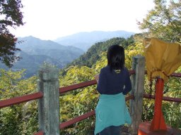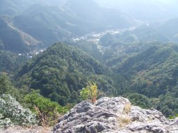 山頂から少し下ったところに開けた場所がありました。 駐車場あたりが見えます。 |