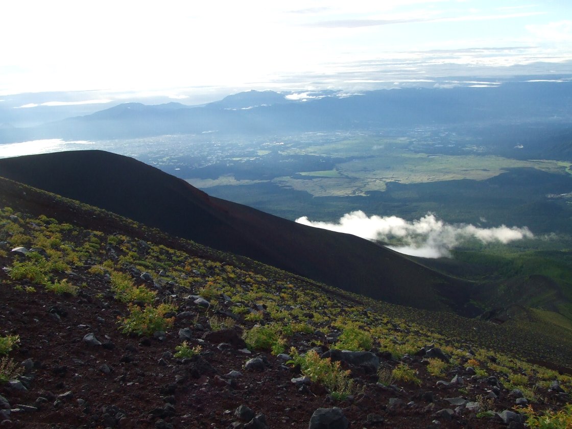しかし、2日目の朝、8合目に向かっている途中で娘の調子が悪くなり(おそらく前日、雨の中を登ってきた疲れと、高山病のためでしょう)今回はここまで!と引き返しました。 残念ながら頂上まではいけませんでしたが、富士山の雰囲気、雲海の眺め、親子の絆???を味わうことができました。