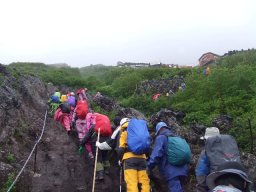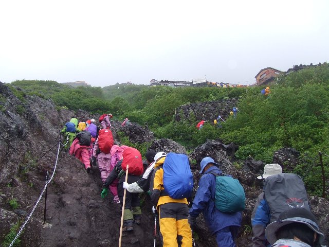 7合目付近です。 ずっとなだらかなのぼりかと思っていました が所々にはこのような急な箇所もあります