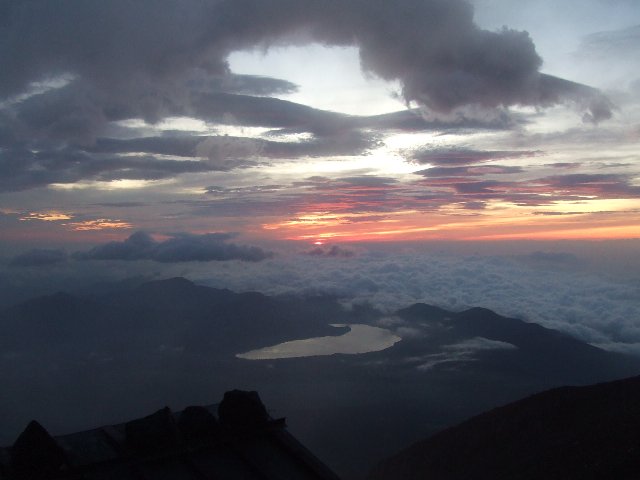 すっきりとは晴れていませんが、8合目から の御来光です。