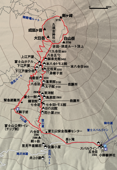 スバルライン5合目です。 食堂やお土産屋がいっぱいの観光スポット。 平日だったのですぐ近くの駐車上に停めるこ とが出来ました。