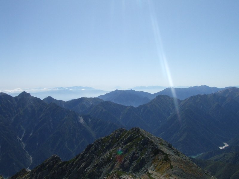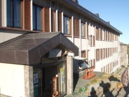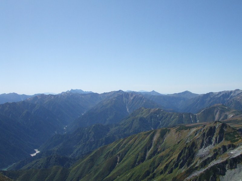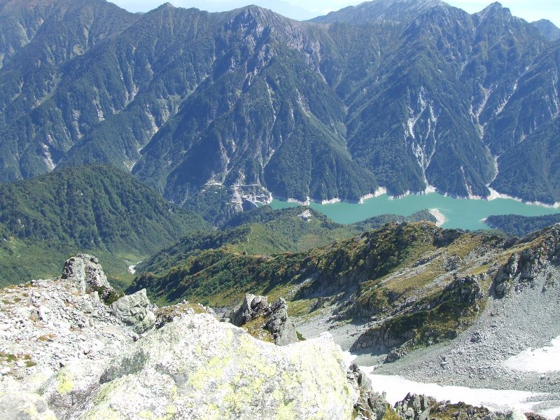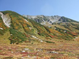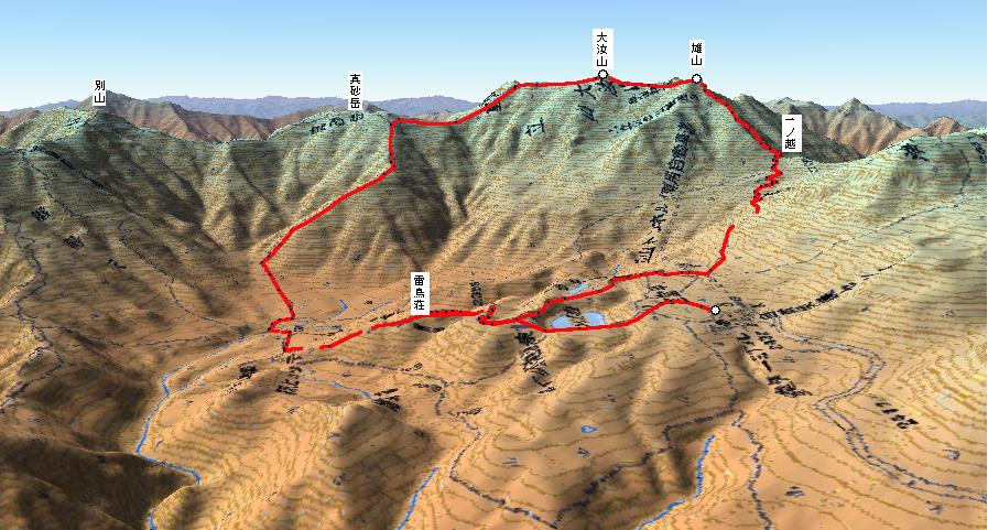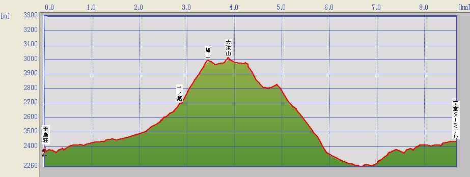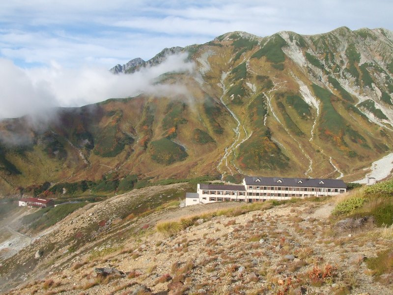 手前に見えるのが本日宿泊予定の雷鳥荘です。 |