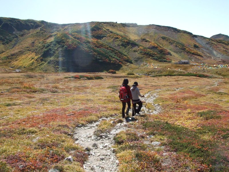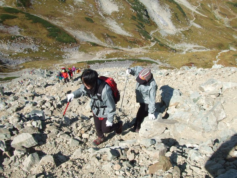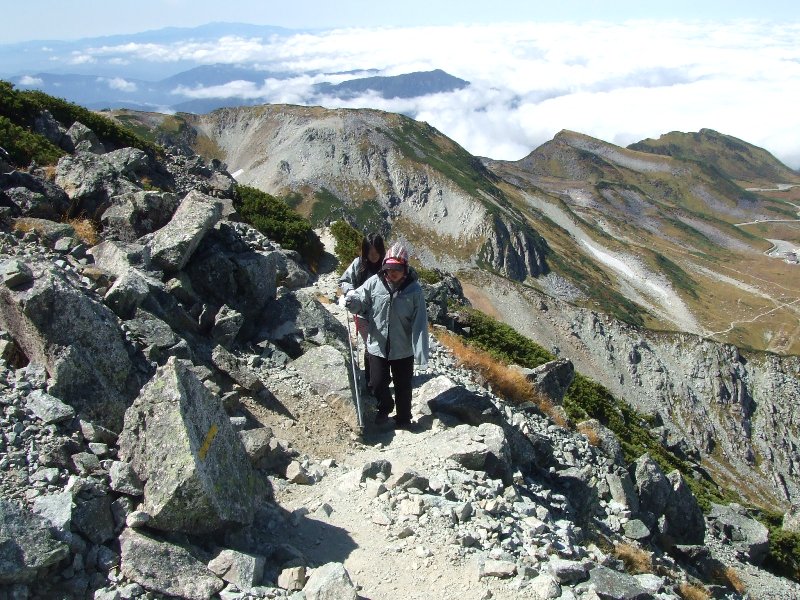 室堂に到着。 下界の天気が嘘のように晴れていました。 やはり第1級の観光地です、大きな荷物の