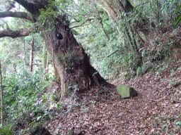 古代祭祀跡のようでこの岩に登ったり、いたずらをすると神罰が当たるとの事です。 |
