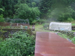 民家の脇にある鉄の橋を渡って登山口に行きます。