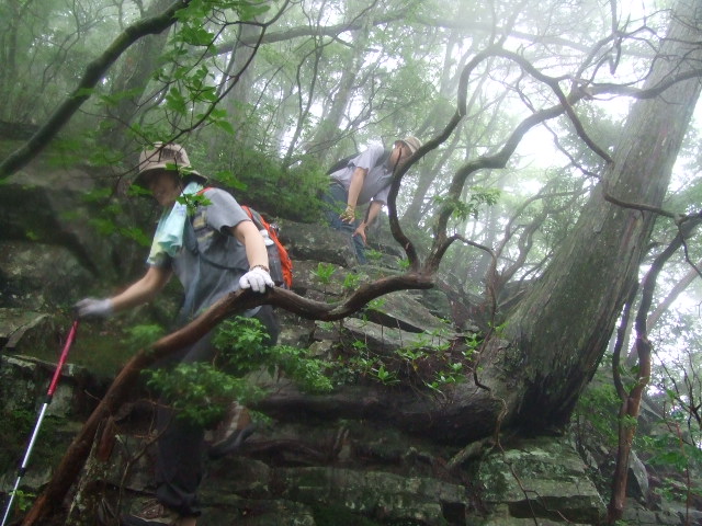 急な岩場が多く、気をつけて慎重に進みます。 |