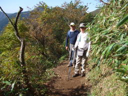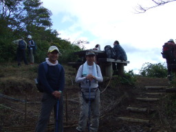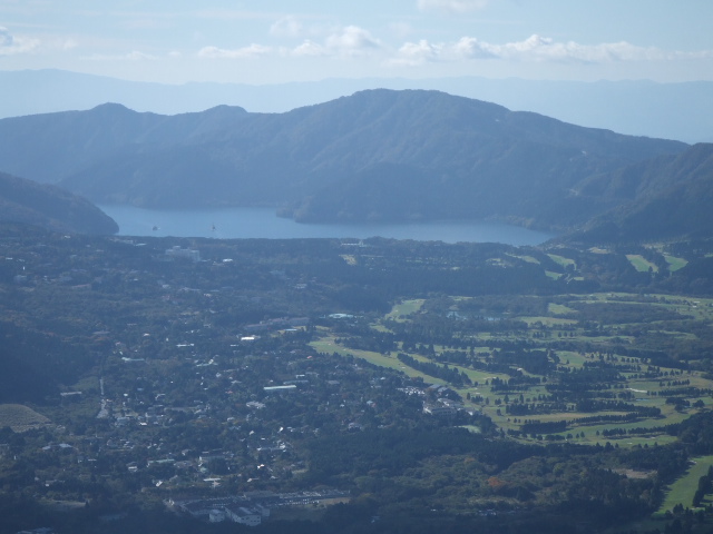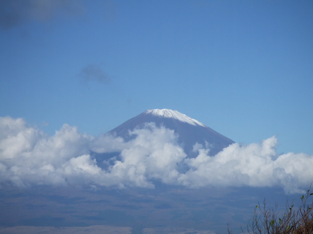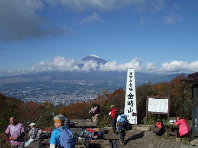 駐車場を出発してから1時間半ほどで金時山の頂上に到着しました。頂上に着くといっきに目の前が開け、素晴らしい展望を望むことが出来ました。富士山の頂上から裾野まで綺麗に見ることが出来ます。 |
