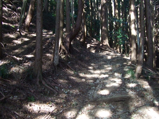 このような林の中を尾根にそってひたすら歩きます。途中アップダウンもあり、なかなか疲れました。