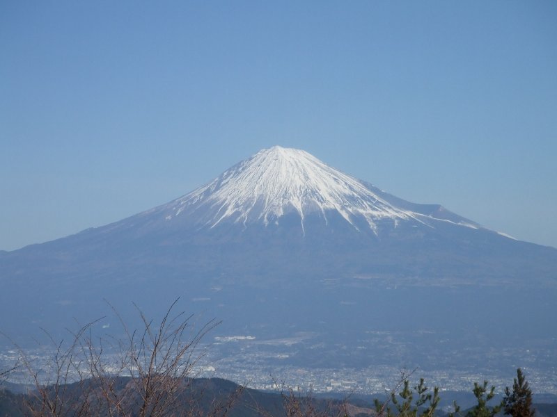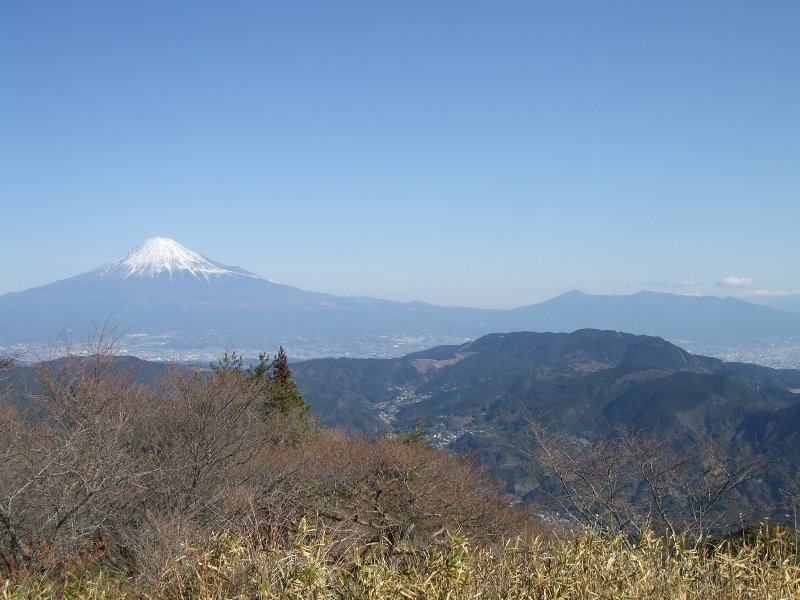 手前が大丸山、富士山の右裾野には愛鷹山が連なります。 |