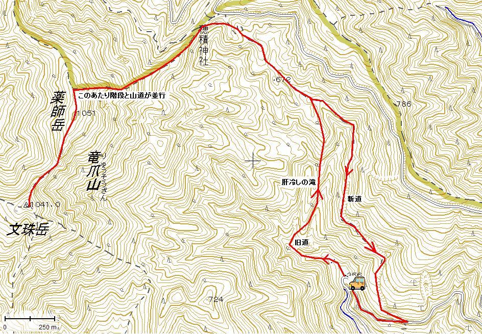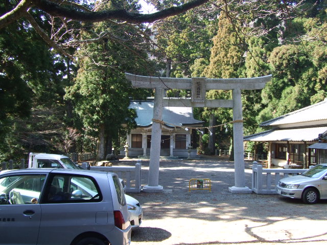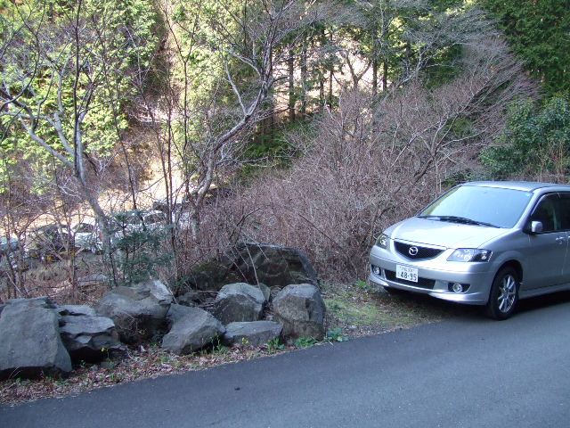 鳥居から、ちょっと登ったところの道路わきにスペースを見つけて停めさせていただきました。 |