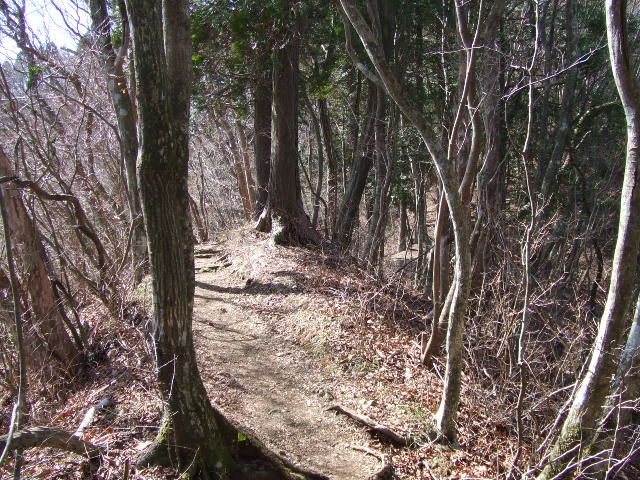 急な坂を上りきると稜線に着きます。ここまでくればあとは平坦な山歩きになります。 |