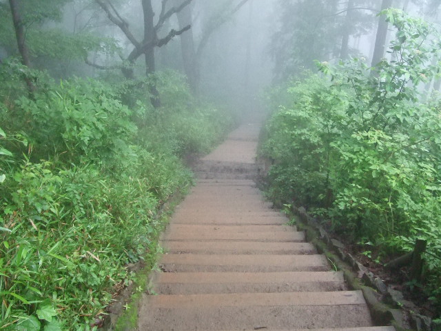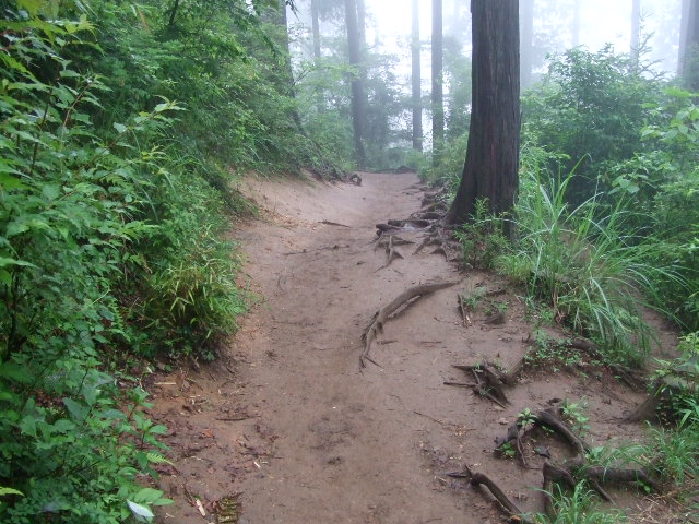稲荷山コースはこのような登山道っぽい道になります。雨にぬれて滑りやすくなっていましたがこんな道の方がいいですね。 |