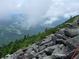 こちら側も急な岩場が続きます。 |