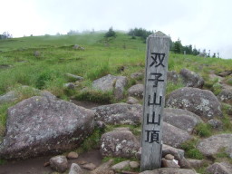 30分ほどで双子山山頂に到着しました。ご覧のとおり草原が広がっていて気持のいい山頂です。 |
