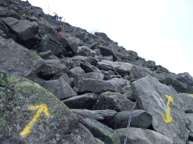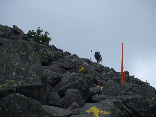 山頂付近はこのような岩場です。慎重に進みます。 |