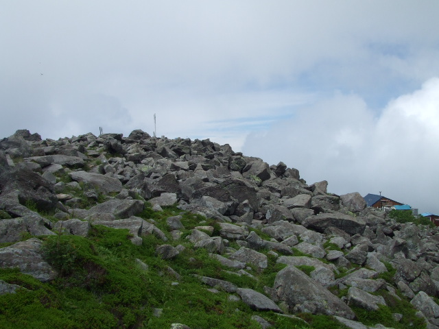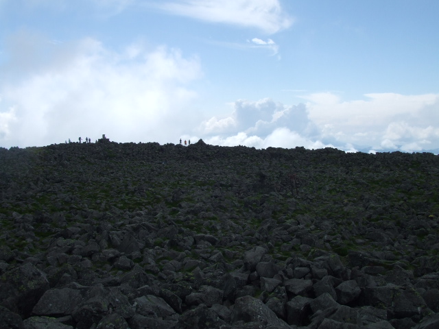頂上付近は火山らしく中央が少し低くなった広大な岩場になっています。 |