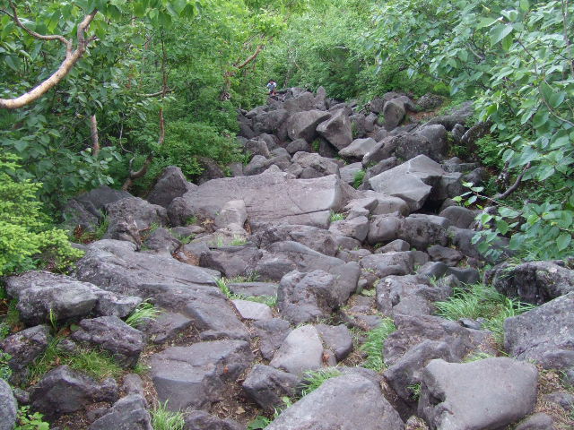 しばらく急な斜面を登っていくと、このような溶岩地帯に入ります。