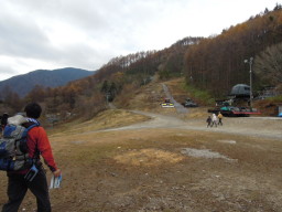 ロープウェイ山頂駅の前はヘブンスそのはらスキー場になります。ここからはスキー場の中を歩きりんどうコースへ向かいます。 |