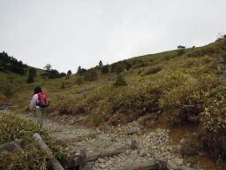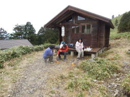 山頂は風が強かったので、ちょっと下ったところの避難小屋でランチタイム。 食事を済ませ下山しました。 |