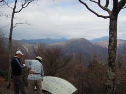 大札山への登山道は数本あり、いろんな方面から登ってくる人たちでにぎわっています。この日は10人ほどの方がいらっしゃいました。 |