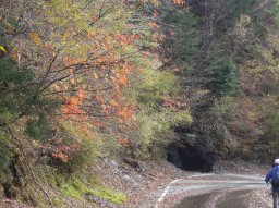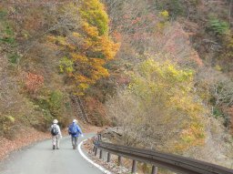 ここからは紅葉や滝を見物しながら林道を歩き、車が置いてあるもみのき平に向かいます。 |