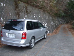 くねくねとした坂道を登ってきたところにある駐車スペースです。ここには2台停められますが、車が多くなると徐々に下の方のスペースに停めることになります。今回出発時は私たちの車が一台で、帰りは途中の登山道ですれ違った方の車があり合計2台でした。 |