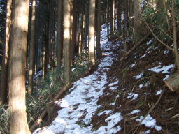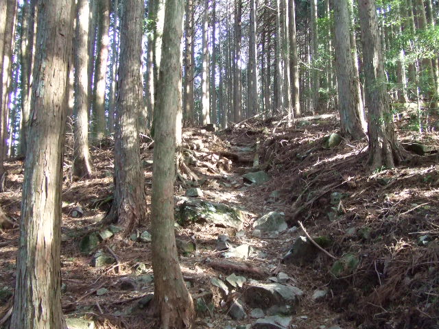 登山口からはしばらくこのような桧林の中を進んでいきます。 |