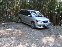 林道を進みましたが、やはりこの車では無理。道路わきの空き地に車を止めてここからスタートしました。 |