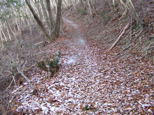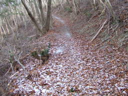しばらく進むと、うっすらと雪が残っていました。2日前に名古屋地方に降った大雪の影響でしょう。凍結は無かったので安心して進みます。 |