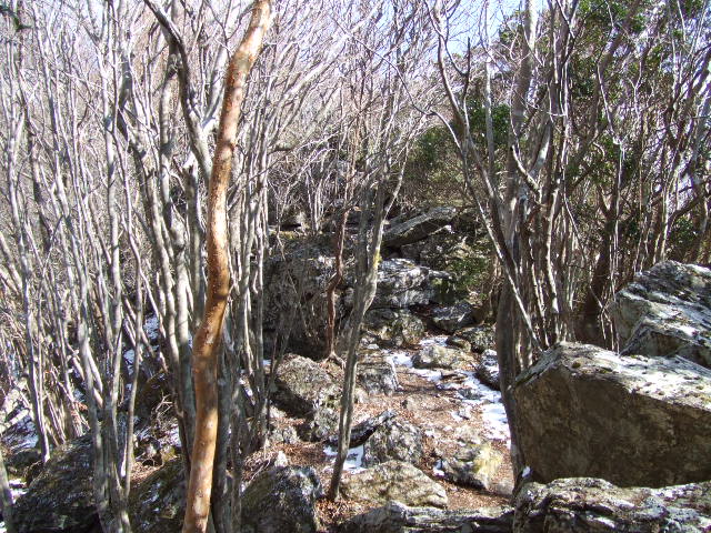 山頂に近づくにつれ岩場が多くなります。 |