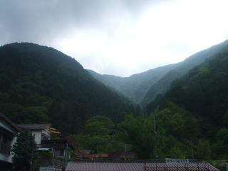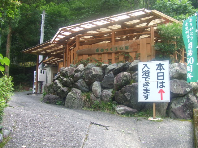 下山口の近くに町営露天風呂があります。普段は\400ですが、ちょうど開湯50周年記念ということで無料でした、ラッキー! 温泉の建物に入る前に管理人のオジサンに山ヒル用の殺虫剤を靴からズボンの裾に念入りにスプレーされました。。 |