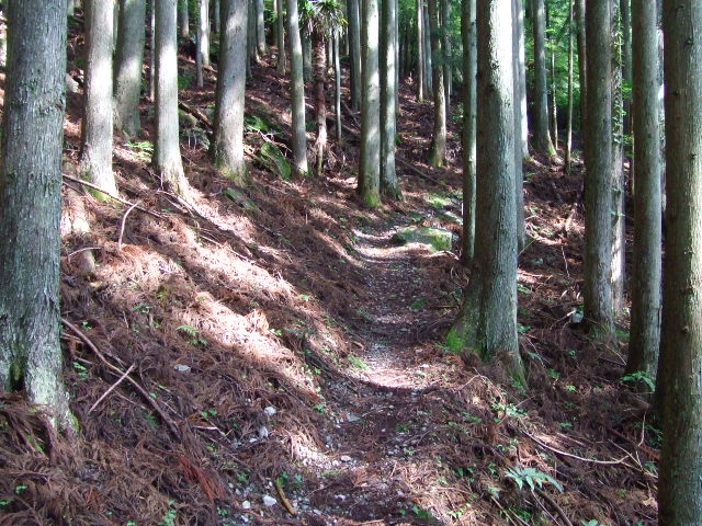 帰りは登りとは反対側の猿並平コースを下ります。どちらも同じような登山道でした。 |