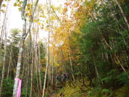 唐沢鉱泉の向い側に天狗岳西尾根登山道の入口があります。 |