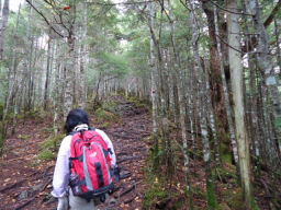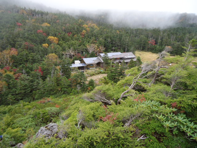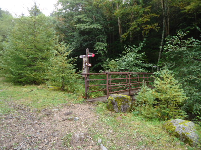 黒百合平から唐沢鉱泉への道が大変でした。河原の中の岩の上を歩くのですが、前日の雨で岩がたいへん滑りやすくなっています。もうこけてはいられないと思い、危ないところは3点支持で慎重に進みました。疲れたなあ。 |