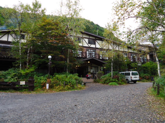 唐沢鉱泉の前に20台ほど停められる登山者用駐車場が有りますがすでに満車。駐車場手前の道路わきに順番に停めていくことになります。200mぐらい手前に駐車することができました。 |
