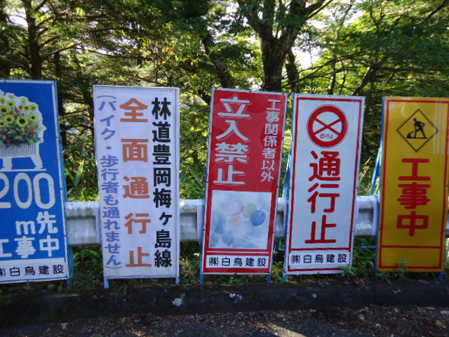 計画では、安倍峠と梅ヶ島温泉の中間地点の駐車場に車を止める予定でしたが、土砂崩れがあったようで安倍峠への道が全面通行止めになっていました。