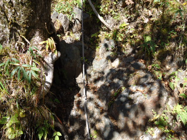 岩場も多くなり、ロープ個所もところどころに現れます。 |