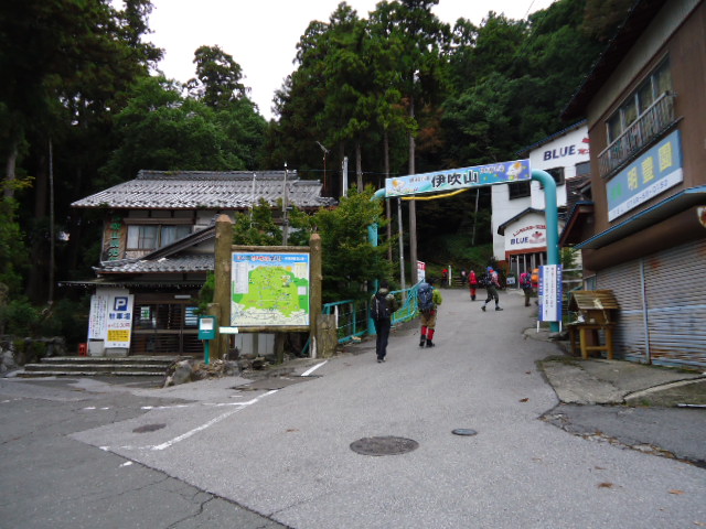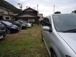 。呼び込みのオジサンに半強制的に引きずり込まれた駐車場に車を止めました。ちなみに登山口直下の駐車場は\1,000でした。 |