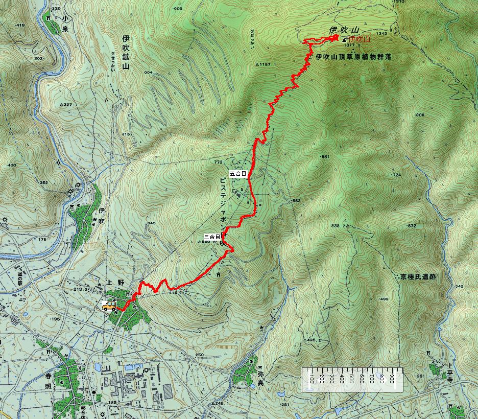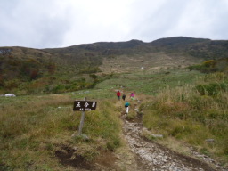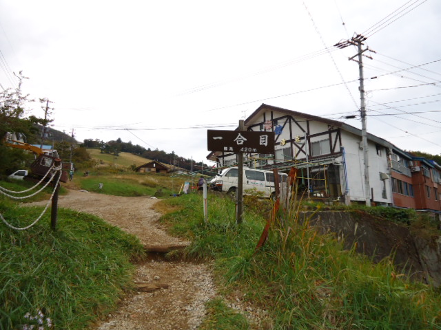 30分程歩くと、一合目に着きます。かつてはスキー場だったようですが現在は閉鎖されていて、パラグライダーの練習場になっているようです。ここにはきれいなトイレが設置されています。 |