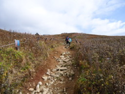 8〜9合目あたりでしょうか、だんだんとこのような岩場が増えてきます。 |