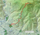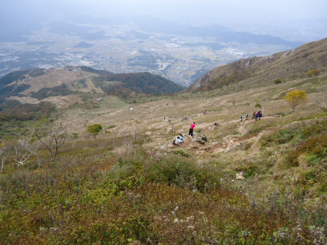 七合目から登ってきた道を振り返ります。富士山登山のようです。 |