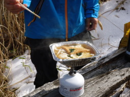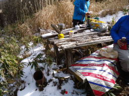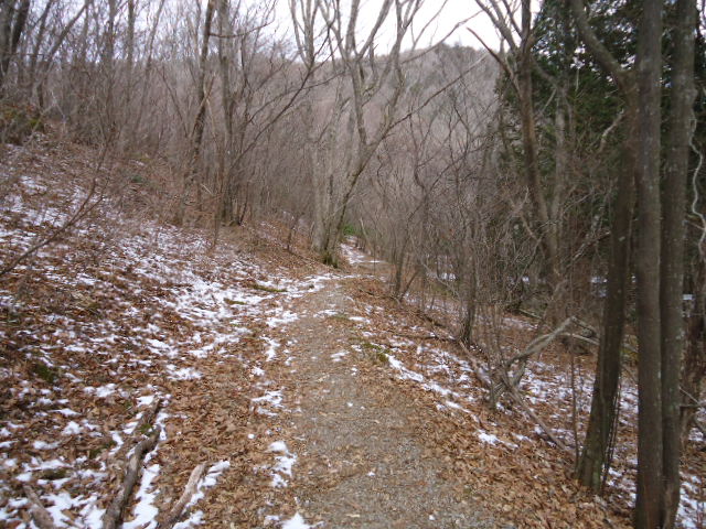 登山道の途中にある朽ちた休憩ベンチで昼食をとり下山しました。 |
