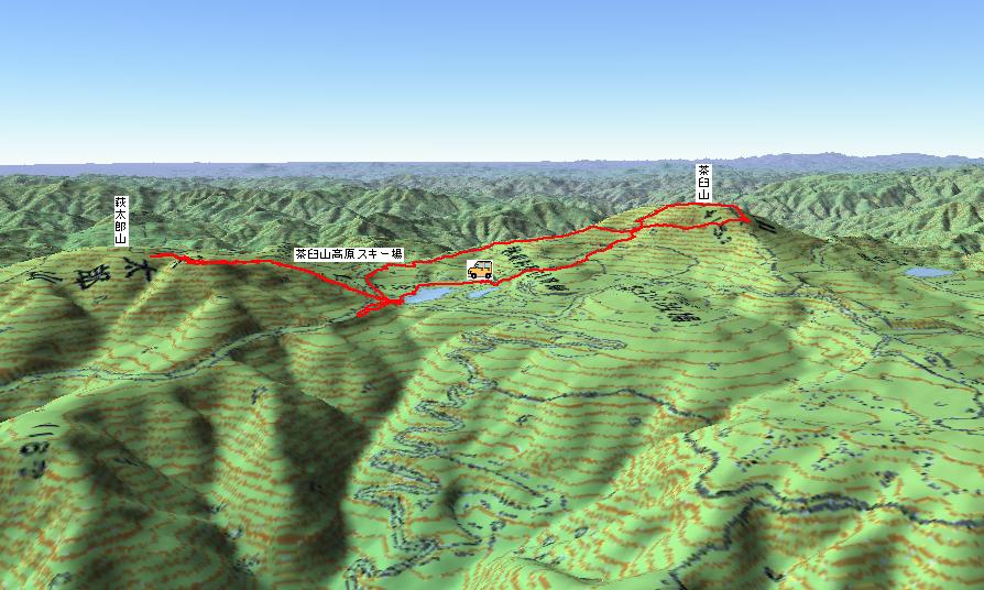 向かい側の萩太郎山です。スキー場のど真ん中を登るわけにもいかないのでどうしようかと悩みましたが、眺めているとリフトの左側にそれっぽいジグザグの白い道があったのでそこを目指します。 |