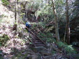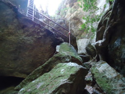 大きな岩を一巡するような遊歩道が整備されています。ハシゴもところどころ錆びていてスリル満点でした。 |