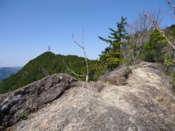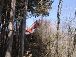 馬ノ背をすぎるとほどなく、山頂に到着します。赤い展望台が目印で、トイレも設置されています。 |