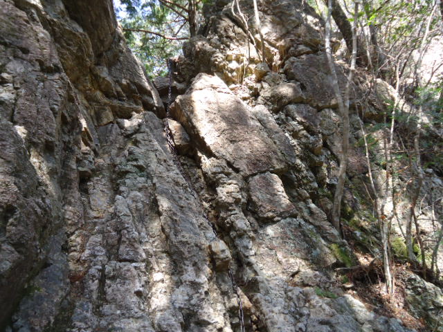 岩場も増えてきて、ところどころ鎖につかまり登る個所もあります。 |