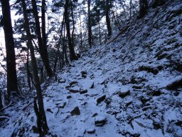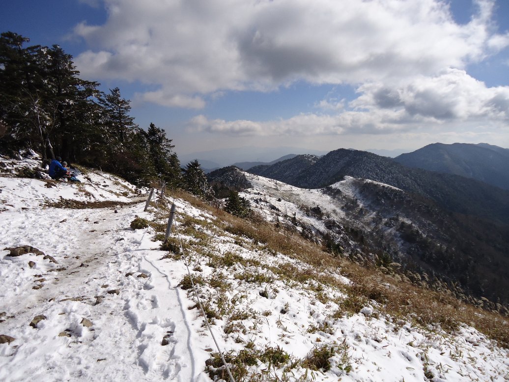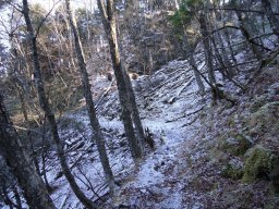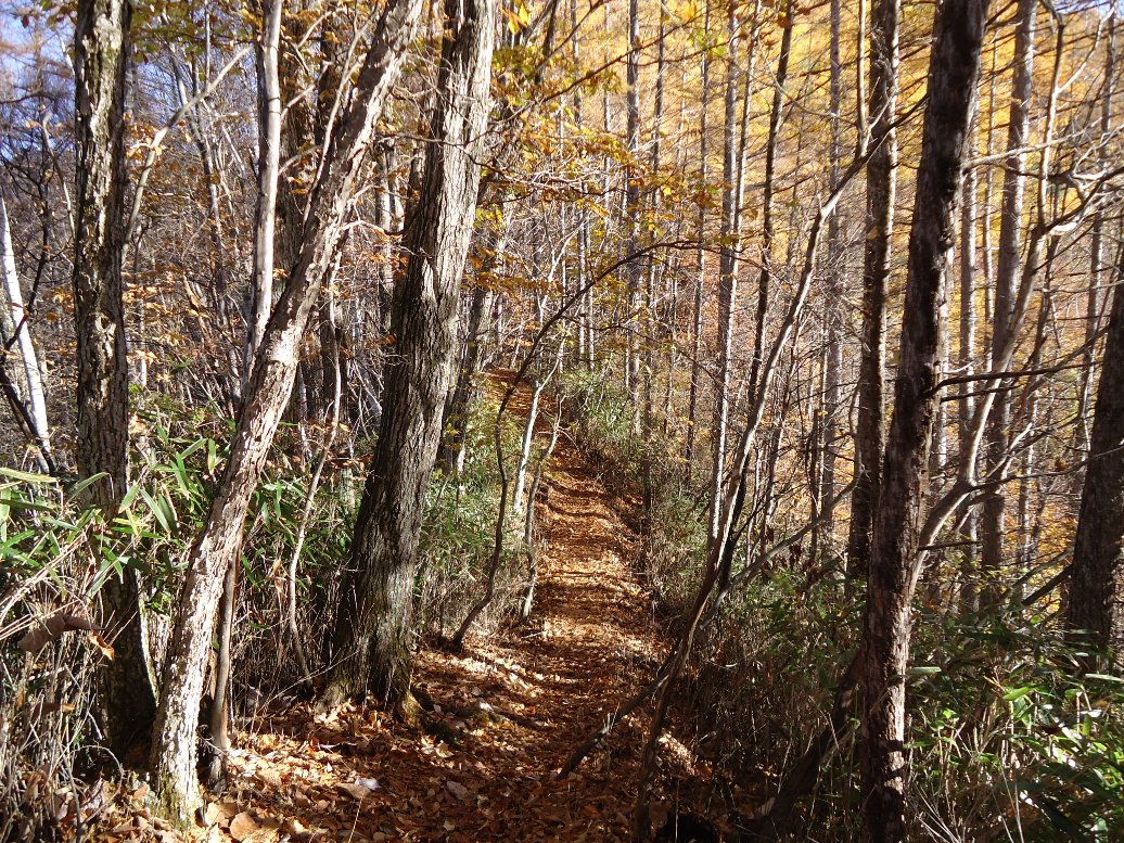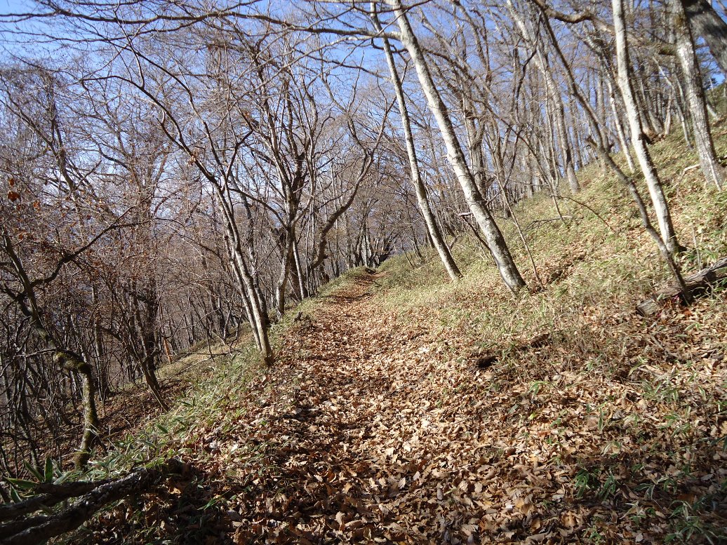 時々岩場の急坂もありますが、周りの木々の葉っぱも落ち周囲の景色を眺めながらの登山を楽しめます。 |