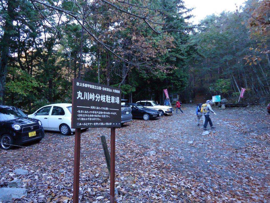 201号を大菩薩峠に向かうと左手に丸川峠分岐駐車場があります。車は2〜30台は停められます(無料)。 |