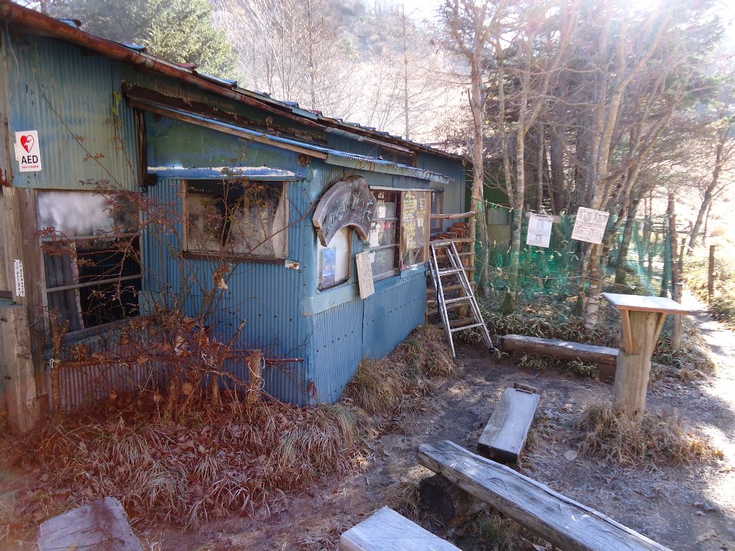 介山荘があり、暖かい食事や飲み物、お土産などを買うことができます。 |