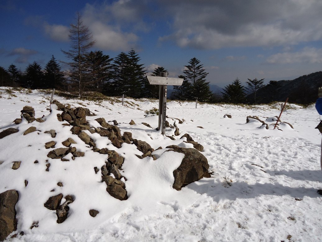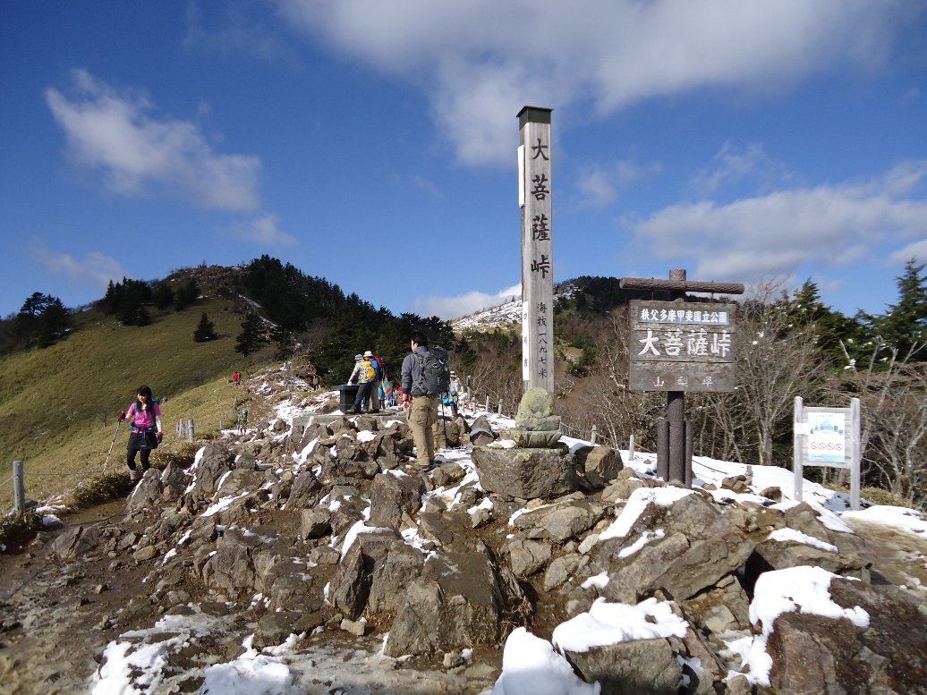 小さな広場になっているのですが、四方を木々に囲まれていて展望はありません。順番待ちをし記念撮影を速攻でかたづけ、大菩薩峠へ向かいます。 |